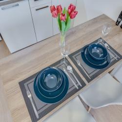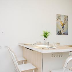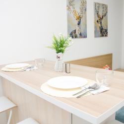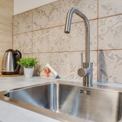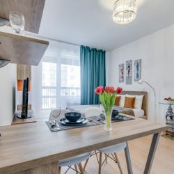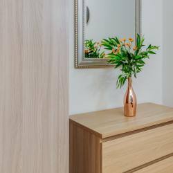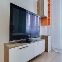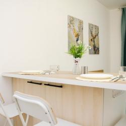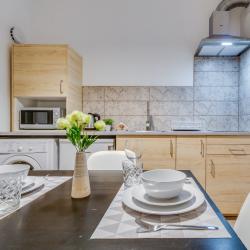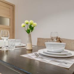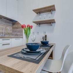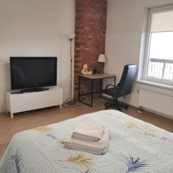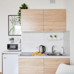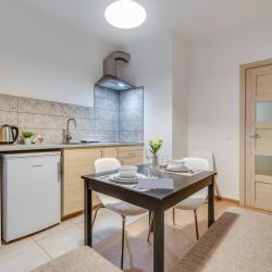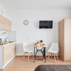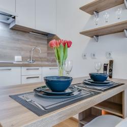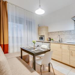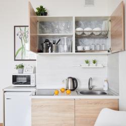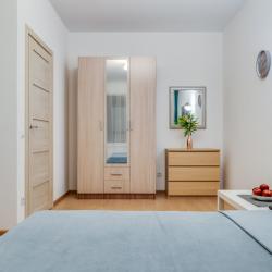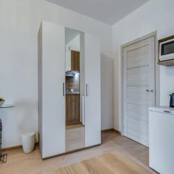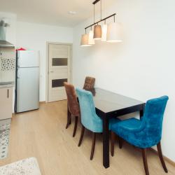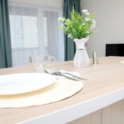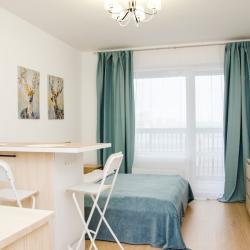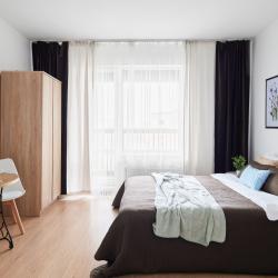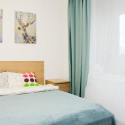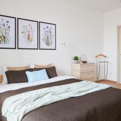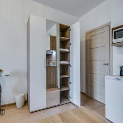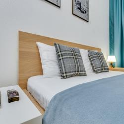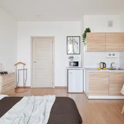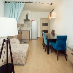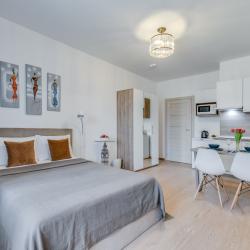 Апартаменты вместимостью до 4 человек. В апартаментах есть все, что необходимо для комфортного проживания: двуспальная кровать с качественным матрасом, дополнительные места, балкон, постельное белье и полотенца, телевизор, Wi-Fi, встроенная плита, духовой шкаф, микроволновая печь, холодильник, электрический чайник, посуда, гигиенические и гладильные принадлежности, стиральная машина, фен, сушилка для белья, санузел и ванна, фен.