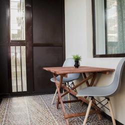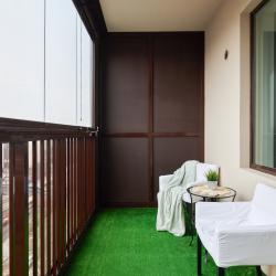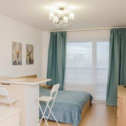 Апартаменты вместимостью до 3 человек. В апартаментах есть все, что необходимо для комфортного проживания: двуспальная кровать с качественным матрасом, дополнительное место, постельное белье и полотенца, балкон с журнальным столиком и стульями, телевизор, Wi-Fi, варочная панель, микроволновая печь, холодильник, электрический чайник, посуда, гигиенические и гладильные принадлежности, стиральная машина, фен, сушилка для белья, санузел и ванна, фен.