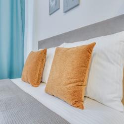 Апартаменты вместимостью до 6 человек. В апартаментах есть все, что необходимо для комфортного проживания: двуспальная кровать с качественным матрасом, раскладной диван, постельное белье и полотенца, балкон, телевизор, Wi-Fi, встроенная плита, микроволновая печь, холодильник, электрический чайник, посуда, гигиенические и гладильные принадлежности, стиральная машина, фен, сушилка для белья, санузел и ванна. Дополнительное место предоставляется по запросу.