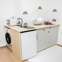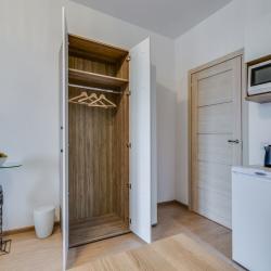 Апартаменты вместимостью до 3 человек. В апартаментах есть все, что необходимо для комфортного проживания: двуспальная кровать с качественным матрасом, дополнительное место, постельное белье и полотенца, балкон, телевизор, Wi-Fi, встроенная плита, микроволновая печь, холодильник, электрический чайник, посуда, гигиенические и гладильные принадлежности, стиральная машина, фен, сушилка для белья, санузел и ванна, фен.