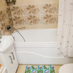 Апартаменты вместимостью до 4 человек. В апартаментах есть все, что необходимо для комфортного проживания: двуспальная кровать с качественным матрасом, раскладной диван, постельное белье и полотенца, балкон, телевизор, Wi-Fi, встроенная плита, микроволновая печь, холодильник, электрический чайник, посуда, гигиенические и гладильные принадлежности, стиральная машина, фен, сушилка для белья, санузел и ванна, фен.