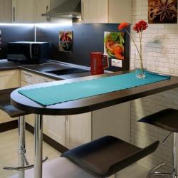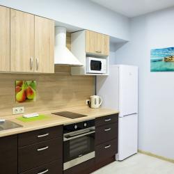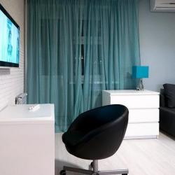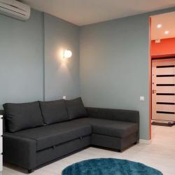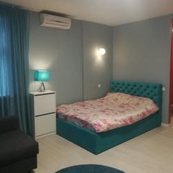 Квартира с панорамным видом расположена в новом доме. Для размещения гостей предоставляется двуспальная кровать и двуспальный раскладной диван. В гостиной - большой плоский телевизор с кабельными каналами, есть кондиционер. Кухня оснащена всей необходимой техникой, а также барной стойкой. В прихожей гардеробный шкаф-купе, комод. Гостям предоставляется постельное белье, полотенца, душевые принадлежности.