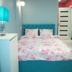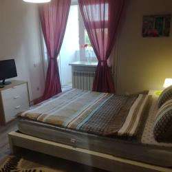Квартира находится в новом доме с парковкой для авто, чистым подъездом и большим лифтом. В апартаментах могут разместиться до 4 гостей. Есть просторная столовая с диваном , спальня с большой двуспальной кроватью, гардеробная комната с гладильной доской и утюгом, большая лоджия. Кухня оснащена всей необходимой техникой.