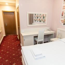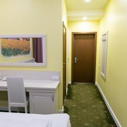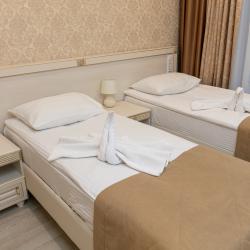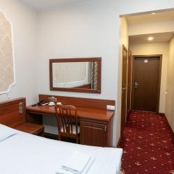 Просторный номер с двуспальной или двумя односпальными кроватями. Номер оборудован телевизором с кабельными каналами, рабочим столом, местом для хранения одежды, тумбочкой. Ванная комната оснащена душем, феном. Предоставляется набор гигиенических принадлежностей.