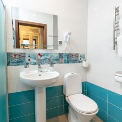 Номер оборудован телевизором с кабельными каналами, рабочим столом, тумбочкой. Ванная комната оснащена душем, феном. Предоставляется набор гигиенических принадлежностей.