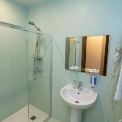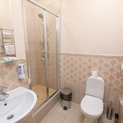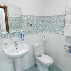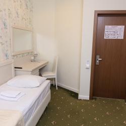 Номер оборудован односпальной кроватью, телевизором, столиком. Ванная комната оснащена душевой кабиной, феном. Предоставляется набор гигиенических принадлежностей.
