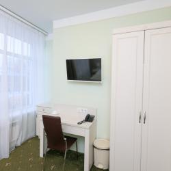 Номер оборудован полутороспальной кроватью, телевизором, столиком. Ванная комната оснащена душевой кабиной, феном. Предоставляется набор гигиенических принадлежностей.