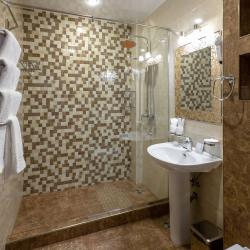 Двухместный номер «Стандарт» с душевой, двуспальной кроватью с ортопедическим матрасом, раскладным креслом и шкафом-купе. Номер оснащен кондиционером, холодильником, сейфом, феном, сушилкой для белья, ванными принадлежностями, посудой. В номере реверсивное освещение, электронные замки. В номере можно организовать размещение на дополнительном месте. Из номера открывается вид на территорию отеля «MODART».