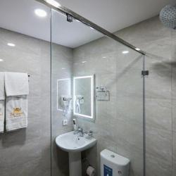 Номер оснащен кондиционером, телевизором с плоским экраном, телефоном, гардеробом для одежды, зеркалами, лампами для чтения, рабочим местом, собственной ванной комнатой с душем, полотенцами, бесплатными туалетно-косметическими принадлежностями.